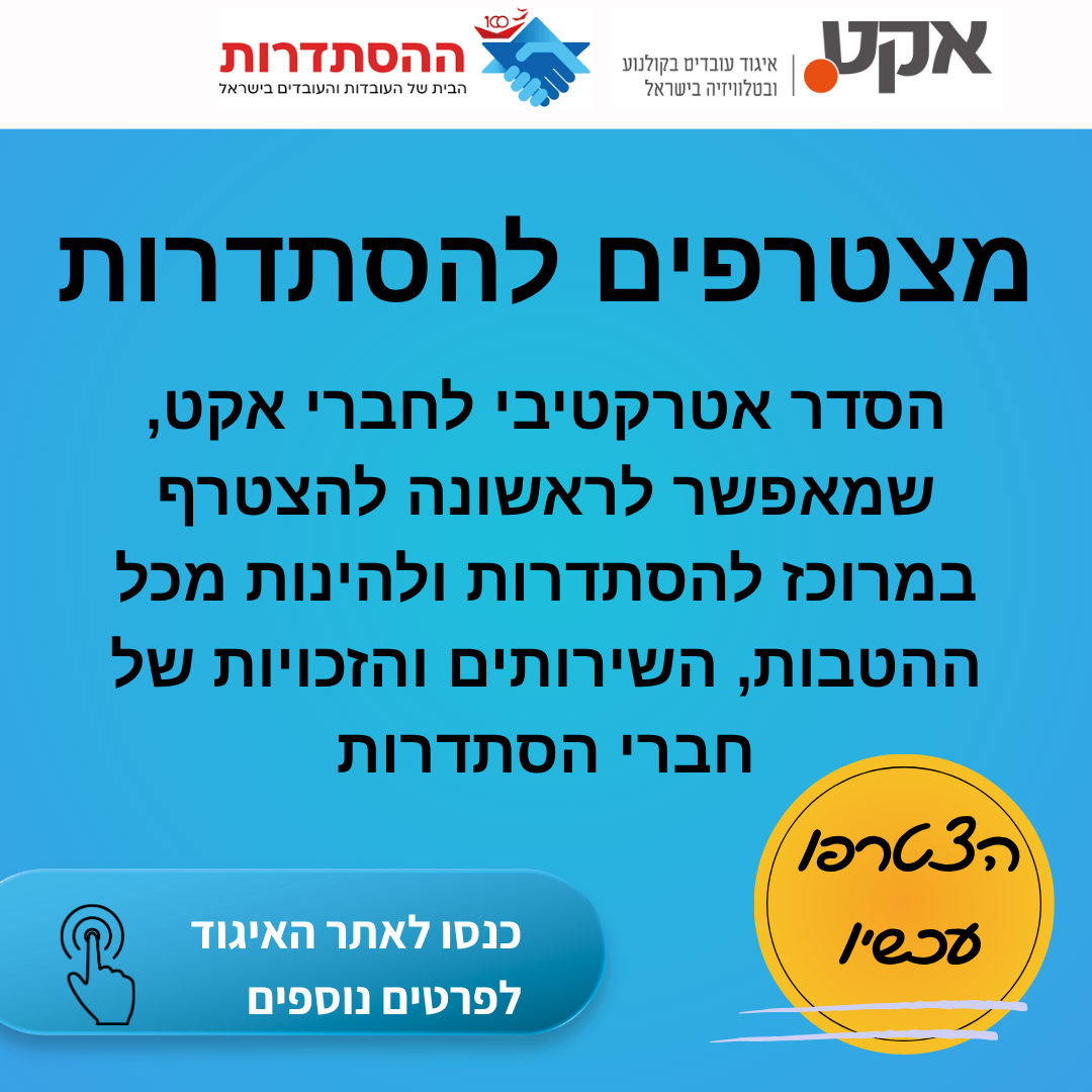 כחלק משיתוף הפעולה האסטרטגי שנרקם לאורך השנים, איגוד אקט וההסתדרות מאפשרים לחברות וחברי אקט להצטרף בקלות להסתדרות.