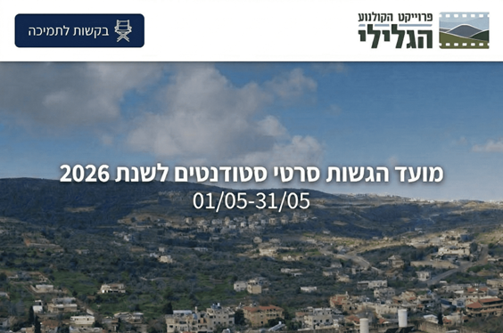 אנו שמחים לעדכן שייפתח מועד הגשות לסרטי סטודנטים באתר פרויקט הקולנוע הגלילי החל מה-01/05/26 ועד ה-31/05/26 בשעה 00:00 בלילה.